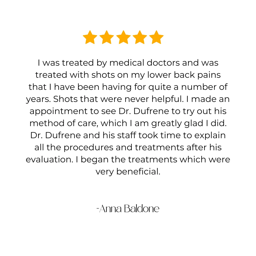 Disclaimer: Procedures and treatments performed by Back & Neck Pain Relief have an inherent success (and failure) rate. Reviews, testimonials and content on this site should not be interpreted as a statement of efficacy of procedures and treatments performed by Back & Neck Pain Relief for anyone else.